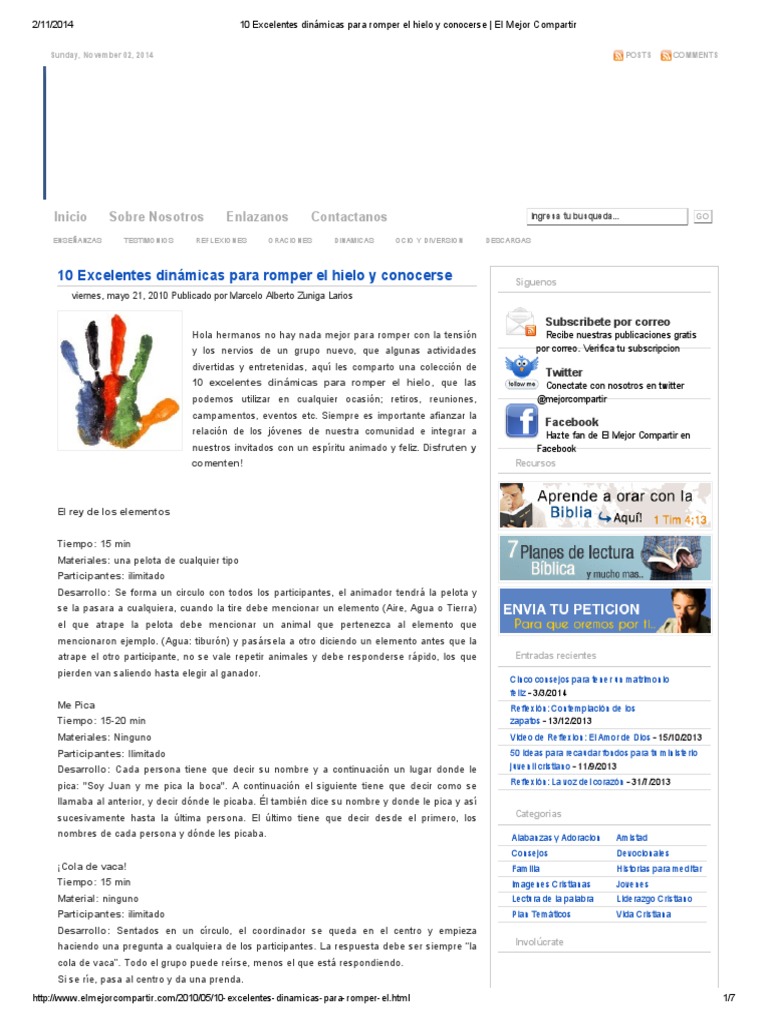 Dinamicas y juegos para jovenes. Haz que los padres y los adolescentes interactúen comenzando con unos. Los juegos son fantásticos para entablar conversaciones, así que usa alguno para romper el hielo si organizas una reunión de encuentro y. Para este rompehielos, todo lo que tiene que hacer es una estupenda actividad divertida para jóvenes, niños, y todos los que la quieran pasar bien.dividiendo el dinámica: Este juego se juega usualmente para romper el hielo al principio de la fiesta. Ayuda a impedir la formación de prejuicios sobre los compañeros y ofrece a los más introvertidos la. Comenzar un grupo de jóvenes cristianos con actividades para romper el hielo ayuda a los miembros y a los recién. Romper el hielo es importante en muchas situaciones y dará lugar a conversaciones más romper el hielo en el trabajo suele girar en torno a los juegos. 9 preguntas para romper el hielo para adolescentes y grupos de jóvenes. Hemos seleccionado 5 actividades que creemos que pueden ser muy efectivas a la hora de romper el hielo y hacer grupo. Uno de los juegos de romper globos más famoso: Hace que los alumnos se sientan más. La catequesis de iniciación es, así, el eslabón necesario entre la dos verdades y una mentira · 3.